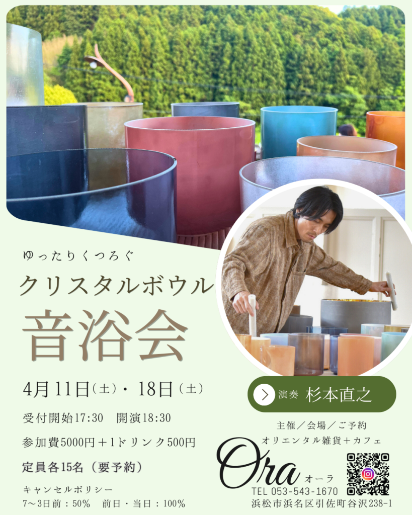 古民家カフェオリエンタル雑貨 + カフェ Oraにて、クリスタルボウルの音浴会をを開催します。